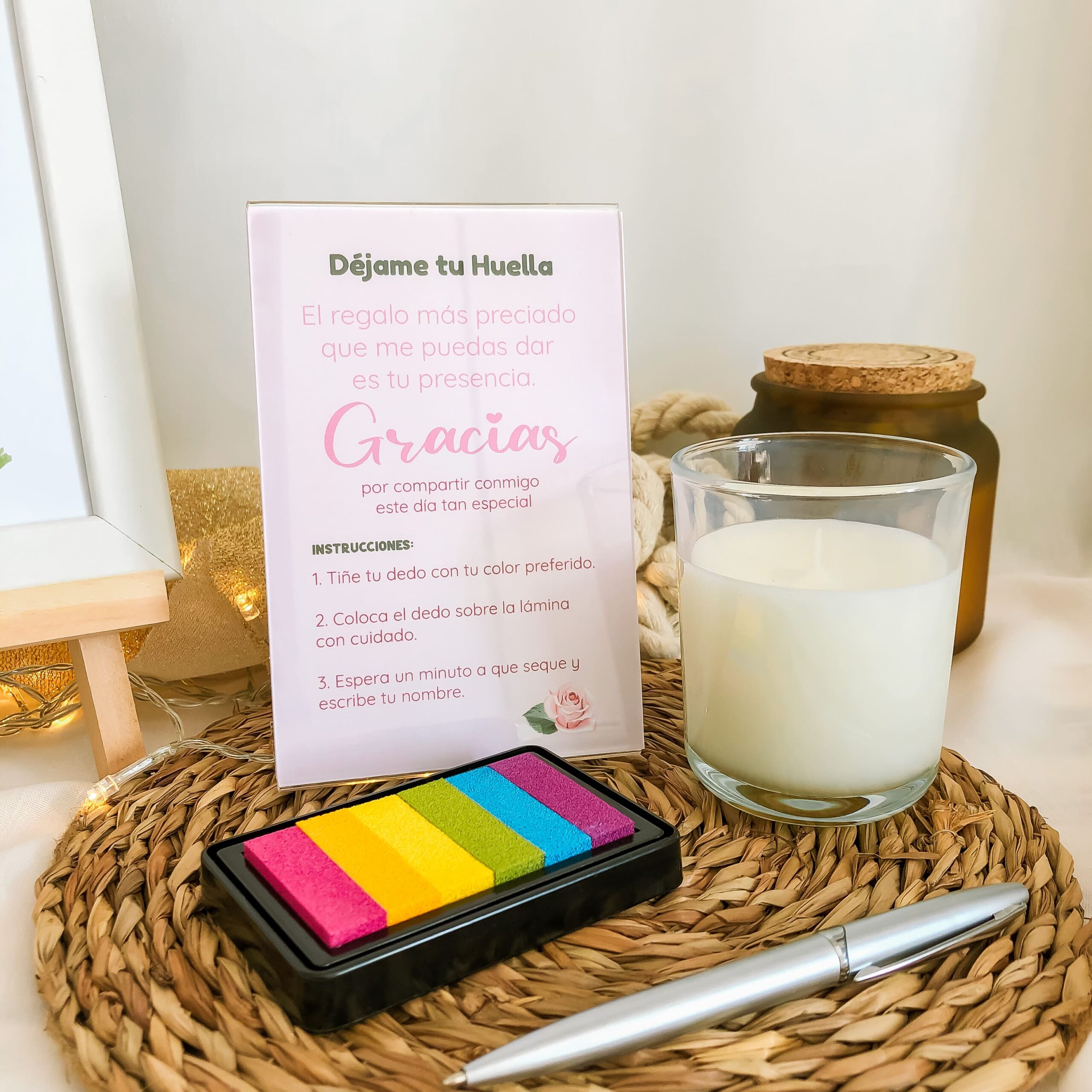 Este PACK HUELLAS contiene todos los elementos necesarios para Decorar una Bonita Mesa de Firmas.