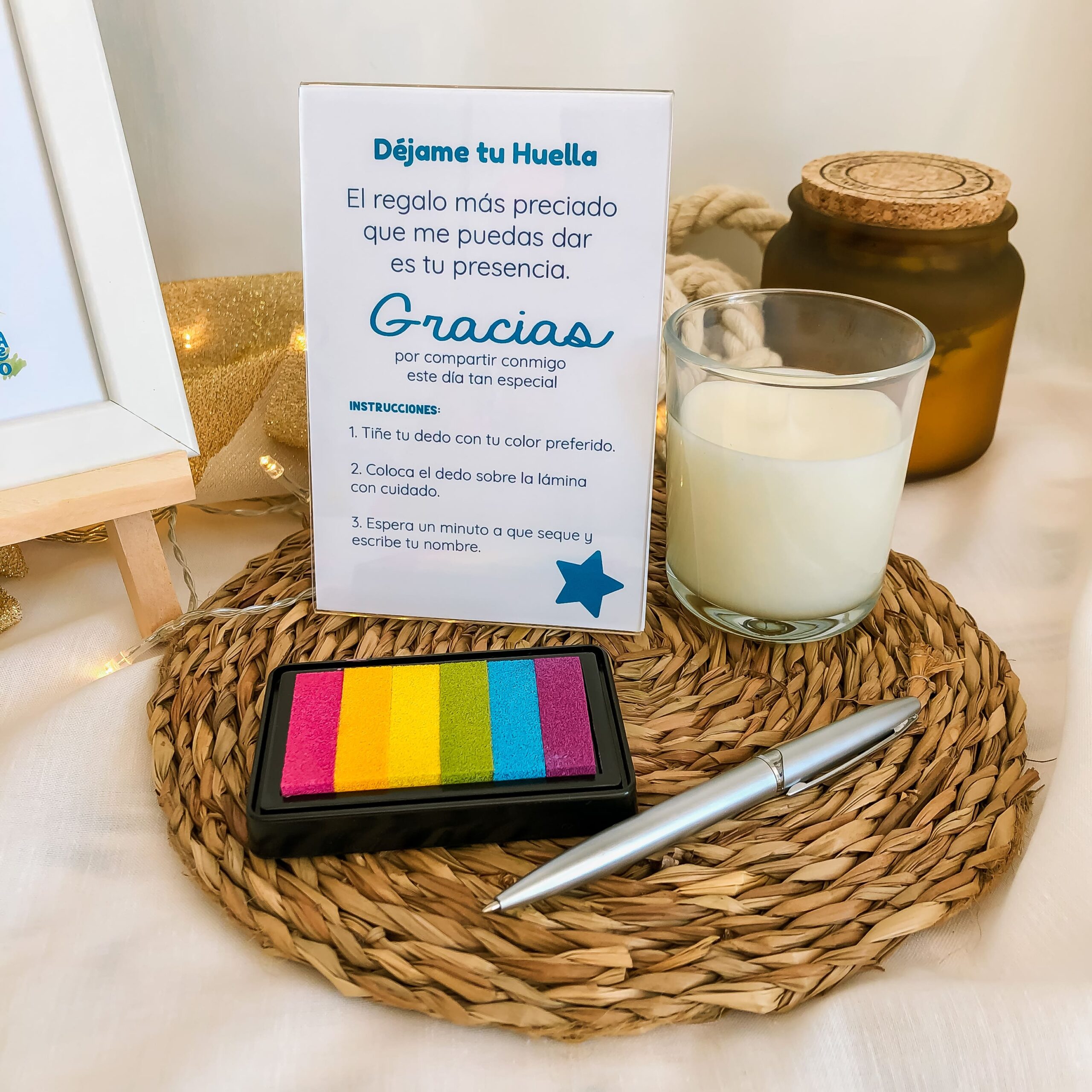 Este PACK HUELLAS contiene todos los elementos necesarios para Decorar una Bonita Mesa de Firmas.