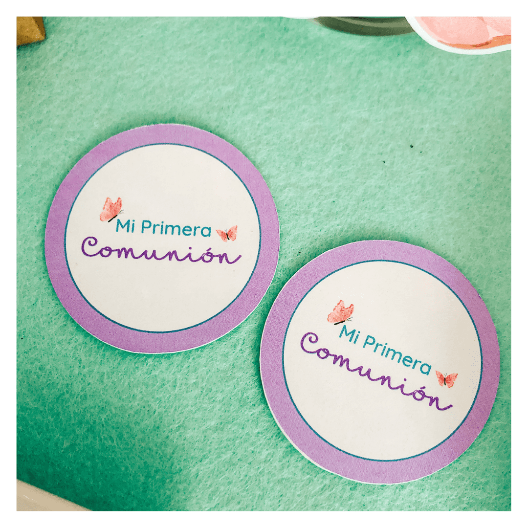 - 12 Etiquetas multiusos redondas de 5cm de diámetro con texto Mi Primera Comunión.