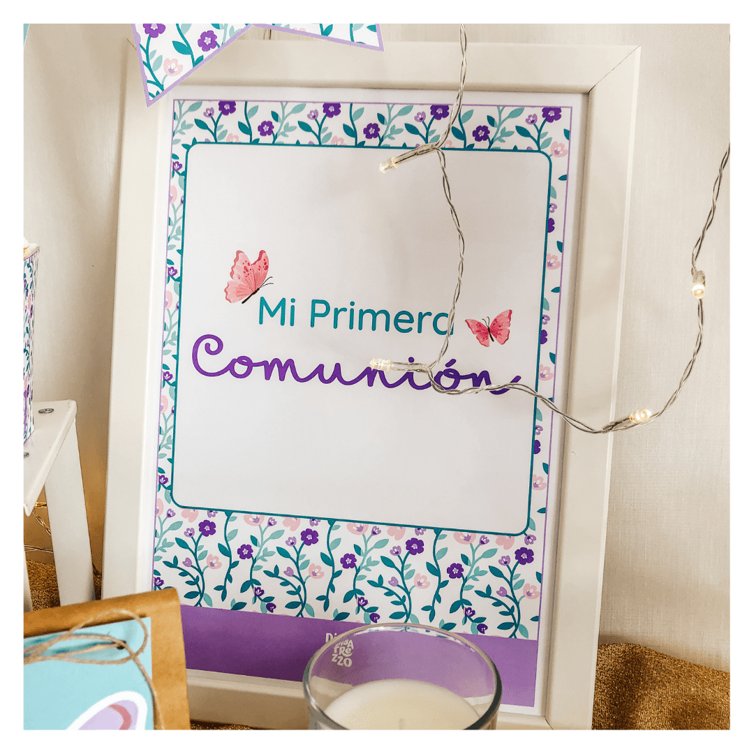 - 1 Lámina decorativa Mi Primera Comunión tamaño A4.